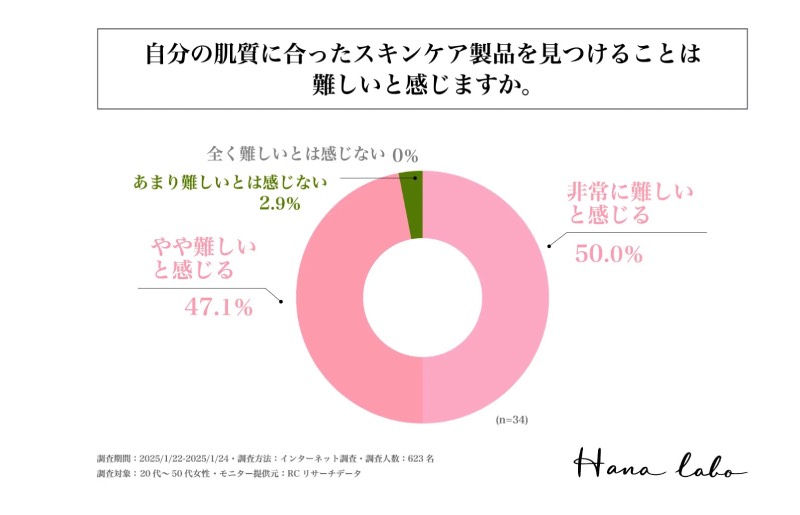 更に自分の肌質に合うスキンケア製品を見つけることを非常に難しく思っている人は623人中50%にもなるので、わたしと同じように悩んでいる人が多いことが分かります。
