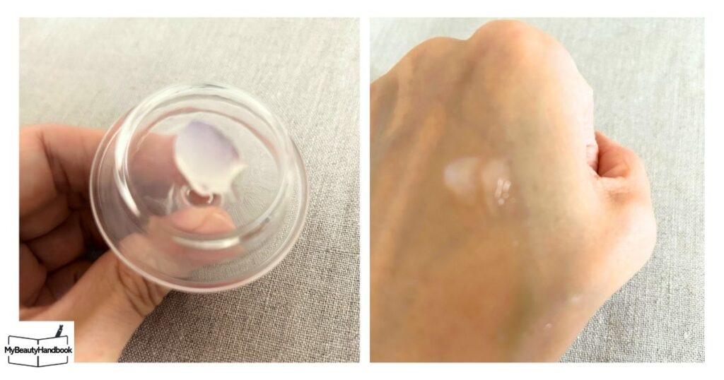 silkyオールインワンジェルは少し白濁とした透明のジェルで付け心地ももっちり、こっくりとしていますがサラッと伸びて保湿力もバッチリ。
